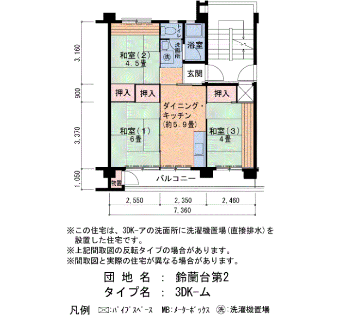 | 3DK | 29号棟 504号室 | 4万5,700円 | 3,500円 | 51㎡ | 5階 | ||