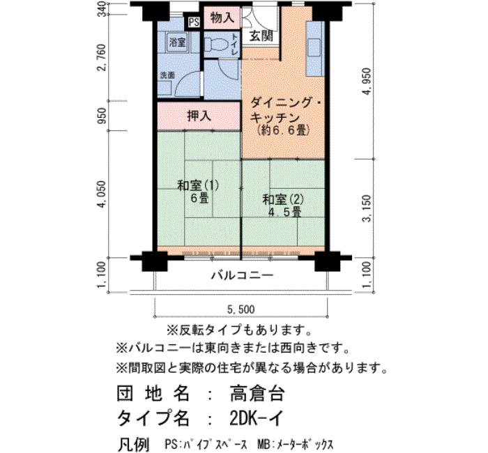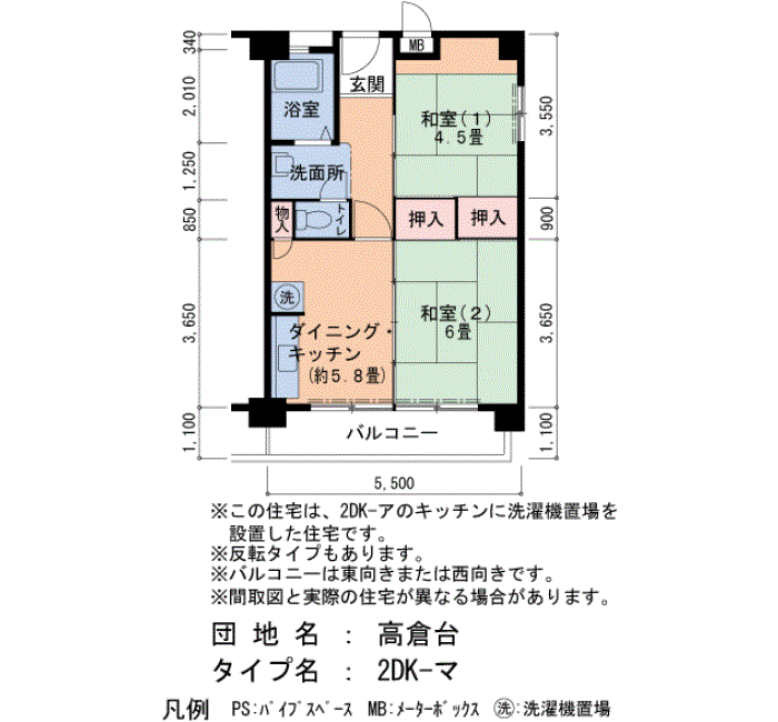 | 2DK | 2号棟 510号室 | 4万9,100円 | 2,300円 | 48㎡ | 5階 |