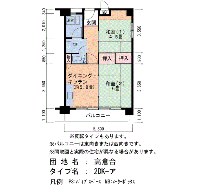 高倉台の家賃・面積データ