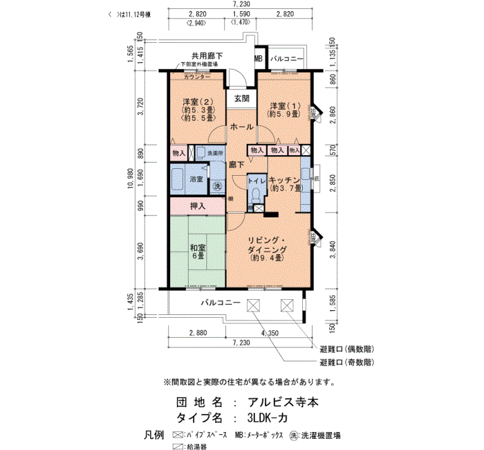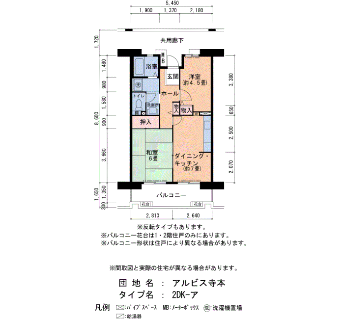 アルビス寺本の家賃・面積データ(号棟別)