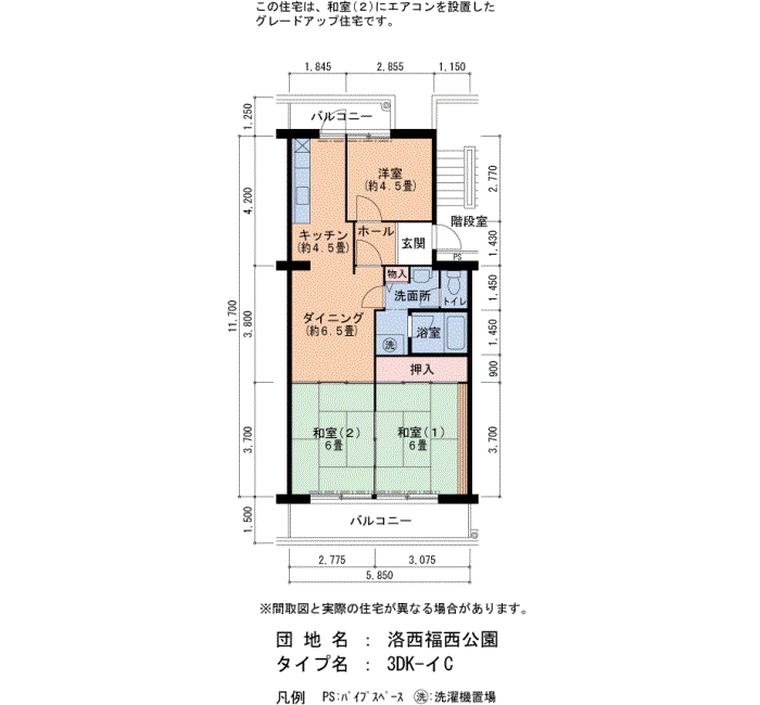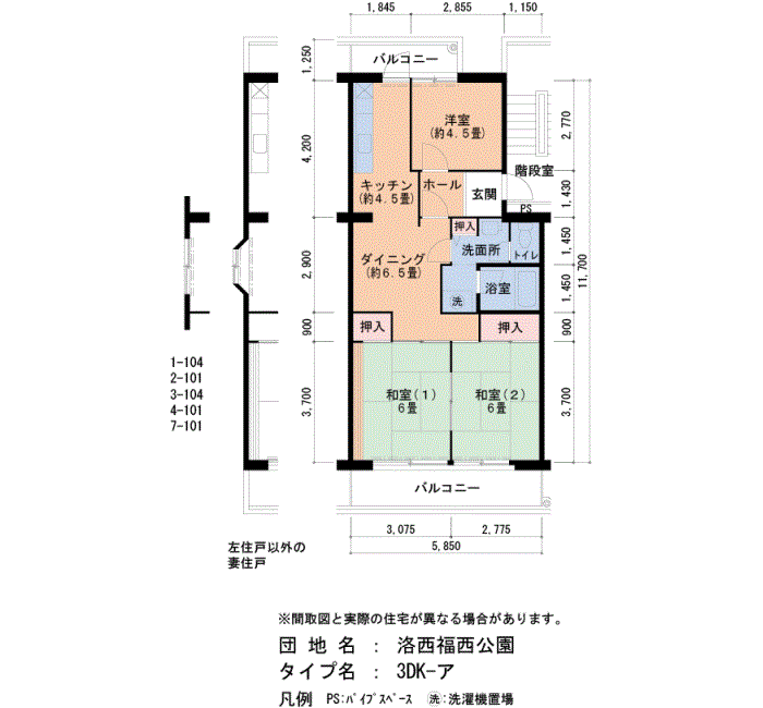| 3DK | 4号棟 405号室 | 6万9,500円 | 1,910円 | 70㎡ | 4階 | ||