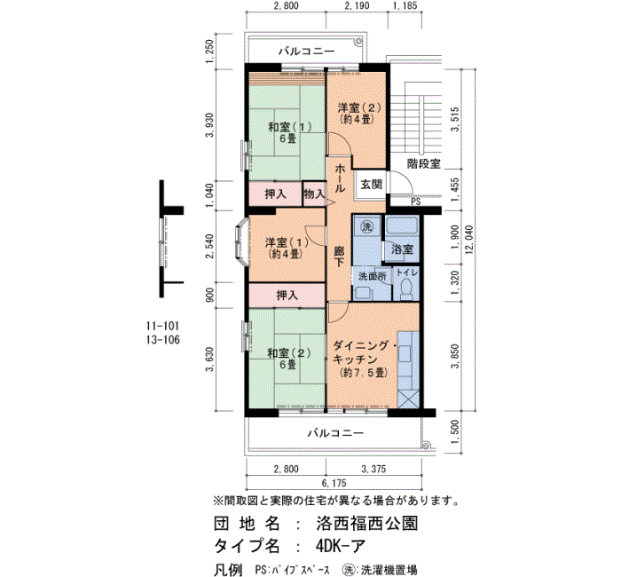 | 4DK | 11号棟 206号室 | 8万100円 | 1,910円 | 75㎡ | 2階 |