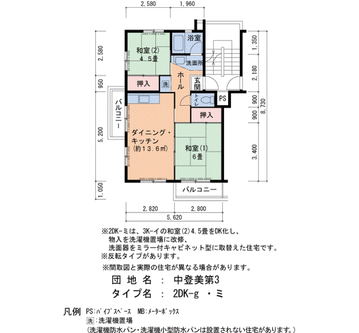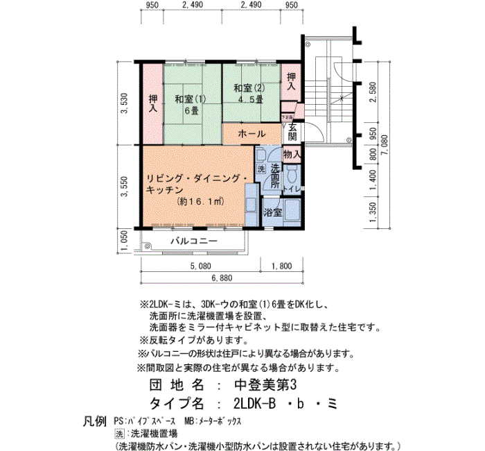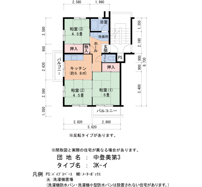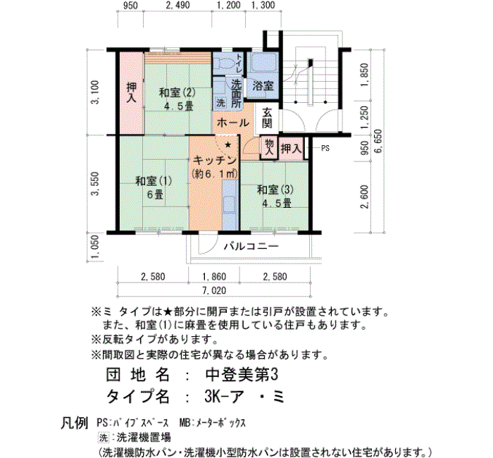中登美第3の家賃・面積データ(号棟別)
