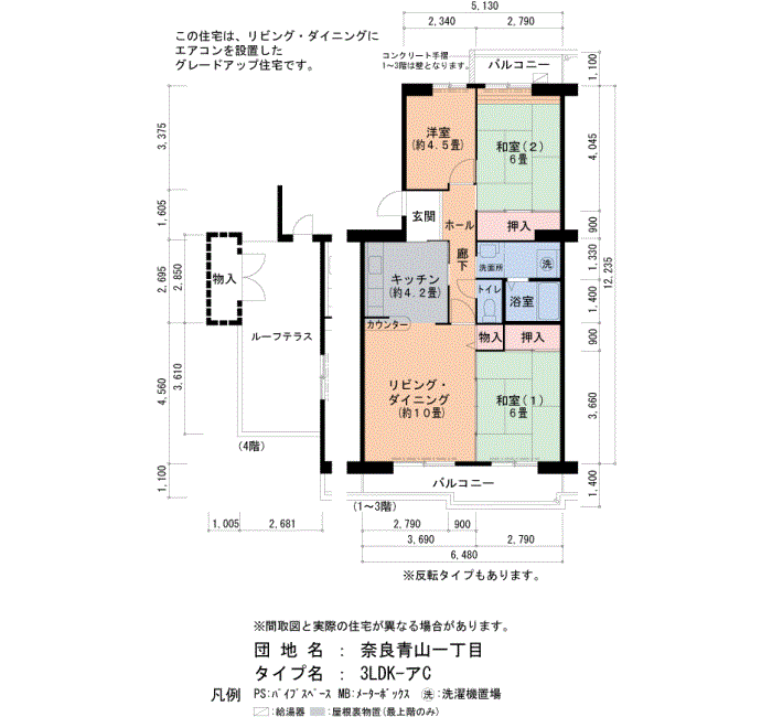 奈良青山一丁目の家賃・面積データ(号棟別)