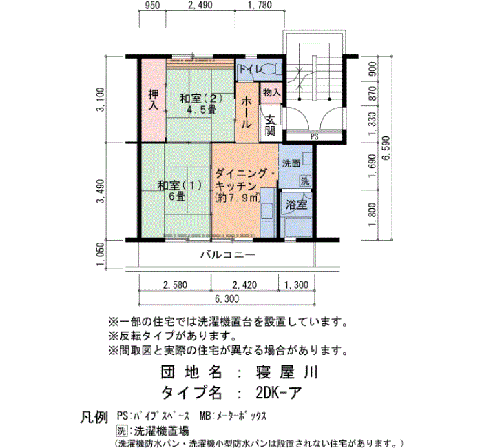 | 2DK | 58号棟 205号室 | 4万6,700円 | 3,900円 | 41㎡ | 2階 | ||