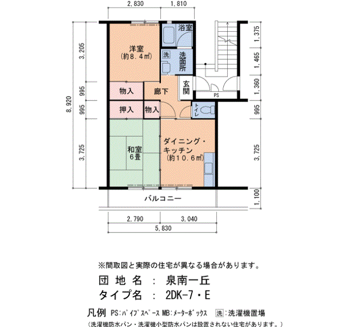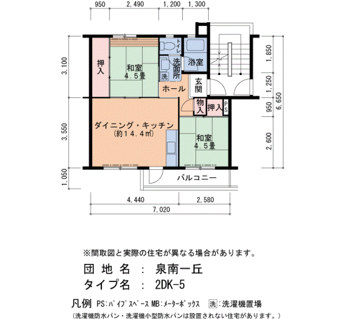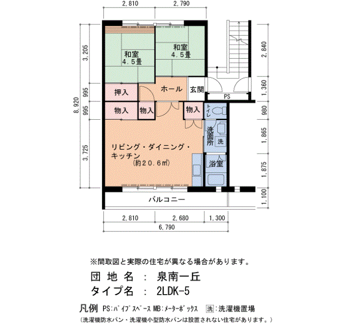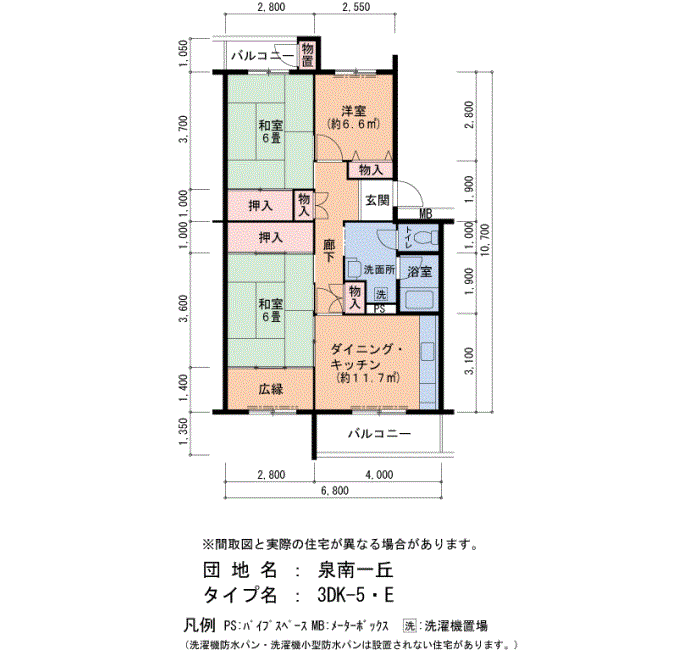 泉南一丘の家賃・面積データ(号棟別)