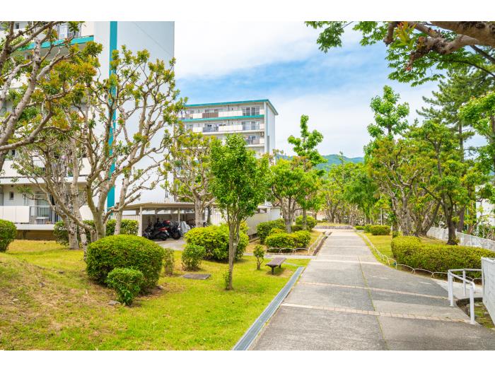 緑が多く静かな町並みです。周辺には5分以内にスーパーや銀行、各科病院施設も揃っているので、生活するうえでも便利なところです!