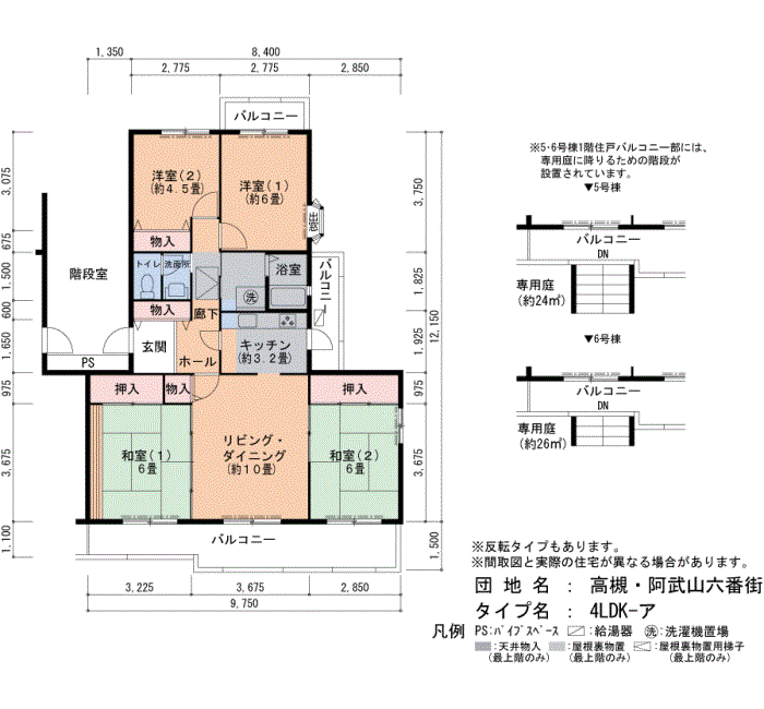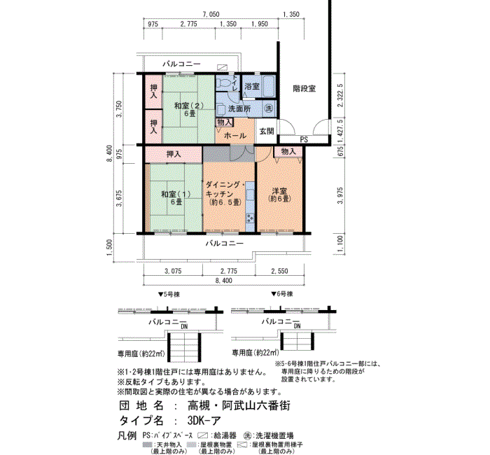 高槻・阿武山六番街の家賃・面積データ(号棟別)