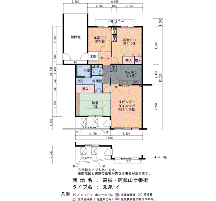 高槻・阿武山七番街の家賃・面積データ(号棟別)