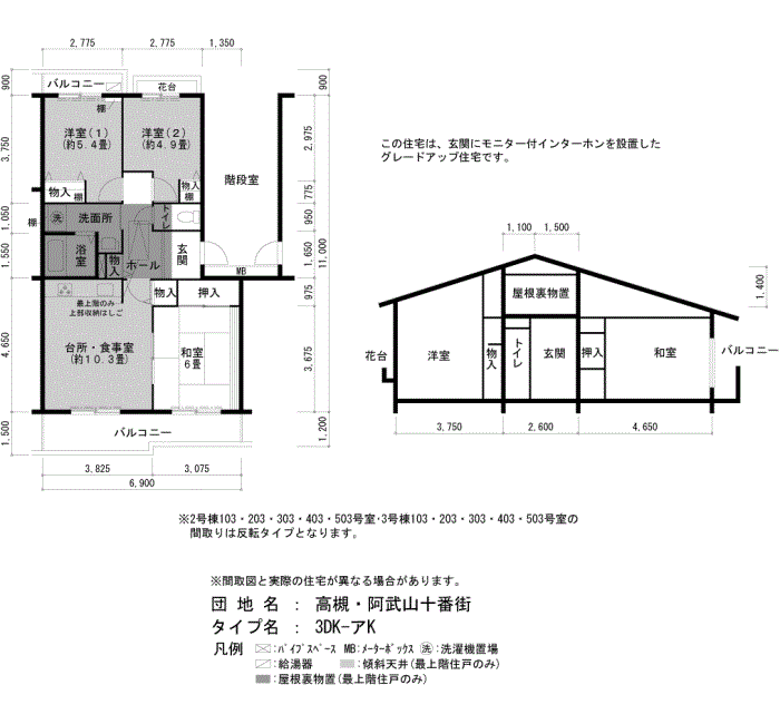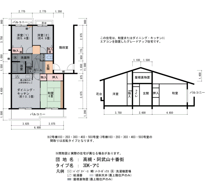 高槻・阿武山十番街の家賃・面積データ(号棟別)